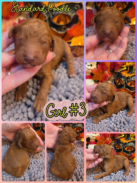 Our poodles are raised and live in our home and puppies are too! They are not raised in kennels as so many breeders do. Kennel breeding gives way to unsociable adults and puppies that lack socialization and appear "wild". We abhor this practice! I have been breeding poodles for about 22 years now. My poodles have food and water left down for them all day but I cook for my poodle family 2 times a day and they receive chicken, organ meat and vegetables everyday as well as their kibble. Puppies are CKC (Limited Registration ONLY) We previously had dewclaws removed and tails cropped without any preference given to new adoptive parents. NOW, while still doing both procedures we offer the option to NOT HAVE IT DONE, but we will have to know by 2-5 days after the puppy is born. Otherwise puppies remain Natural. These practices are being re-evaluated and outlawed in many countries as well as some states. The Poodle is beautiful without any cosmetic alterations and the alterations were deemed the breed standard by registration companies for show purposes, not for health reasons. We can provide you with YouTube videos (above) showing the reasons behind the tails and dewclaws remaining intact and their importance in your companion. If you choose cosmetic alteration, puppies will have their tails amputated/docked to AKC standards, no short little "stubbies" here! And if you choose to amputate the dewclaws notification must be done by day 5 after the puppies are born. *All puppies will have had regular series of worming medication beginning at 2 weeks and then proceeding at 3, 4, 6, 8 weeks old. We use Strongid, Panacur C and Drontal Plus. Toltrazuril 5% treatment to prevent coccidia *All puppies will arrive at their forever home vaccinated against parvovirus, distemper, hepatitis, kennel cough, or other communicable diseases before the time of sale. Our puppies have environments treated with Trifectant and Chlorhexidine, are vaccinated with a Parvo vaccine at 4 weeks of age, a 5 way vaccine at 6 weeks of age. *All puppies have been handled since birth and I follow steps set out in Puppy Culture! All puppies come with their own individualized growth folder from birth, health record for your veterinarian, sample of food, Toys, a blanket, A Sample of NuVet Canine Plus (ordering is easy! www.nuvet.com/65256 ) A collar/lead, a chew-able toy like Puppy Nyla-Bone. Micro-chipped, a CD full of things you need to know about raising your puppy, A CD with 4 E-Books, one by by Cesar Millan, Registration papers will be sent after sterilization (This is because of the doodling movement) Puppies have begun crate training and have almost mastered house training by the time they leave and they are pad trained. We hope to help you find your new fur family member. (We do reserve the right to deny an applicant if we feel the home is unsuitable)