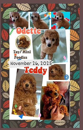 Bella's Lovely Dove and Sensational Rocky December 18th 2025 Standard Poodles Brown, Black, Partis, Silver and Phantom possible.